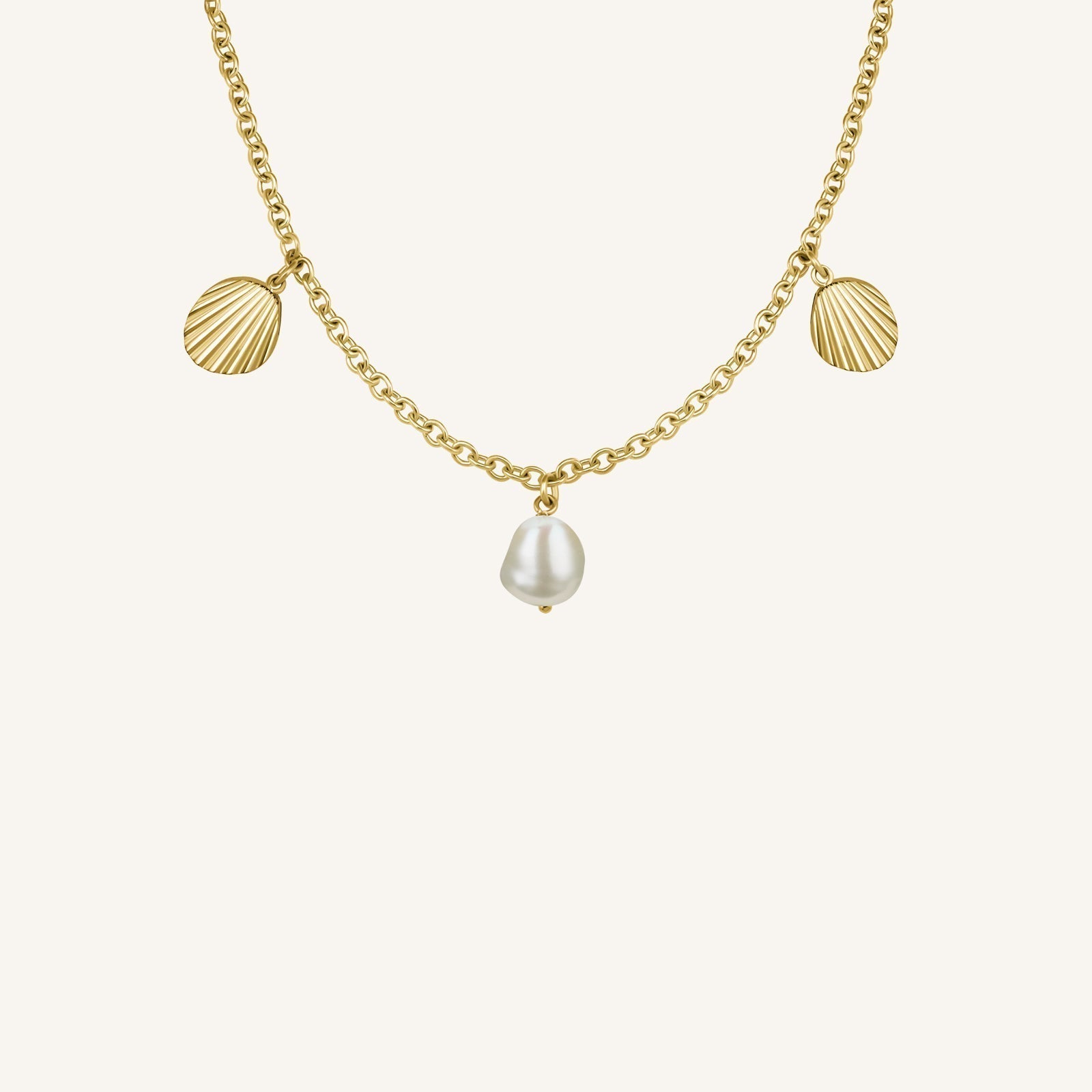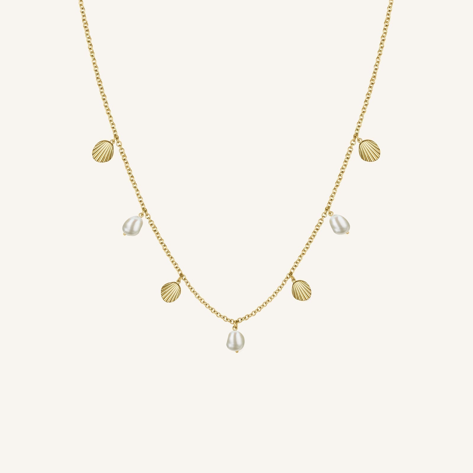 Cette création est confectionnée avec des breloques coquillages et perles. La longueur de la chaîne peut être ajustée facilement. Un essentiel de tous les jours, facile à assortir avec vos bijoux préférés.