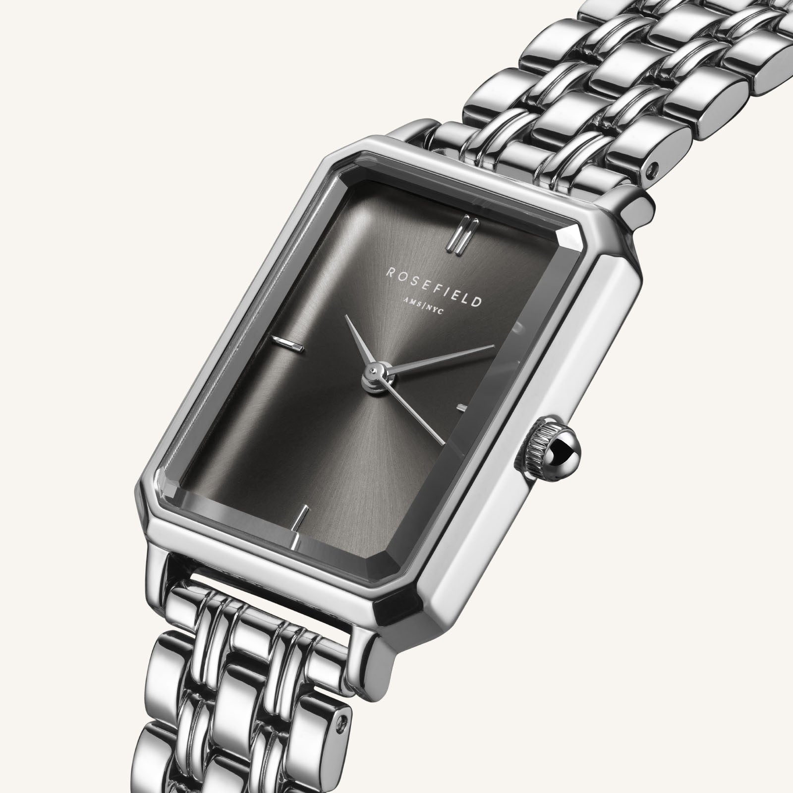 The Octagon est notre nouvelle collection de montres au style à la fois moderne et classique. Son boîtier octogonal résolument rare et son bracelet métallique à 5 maillons évoquent l'élégance des années 20 et en font un véritable accessoire de mode.