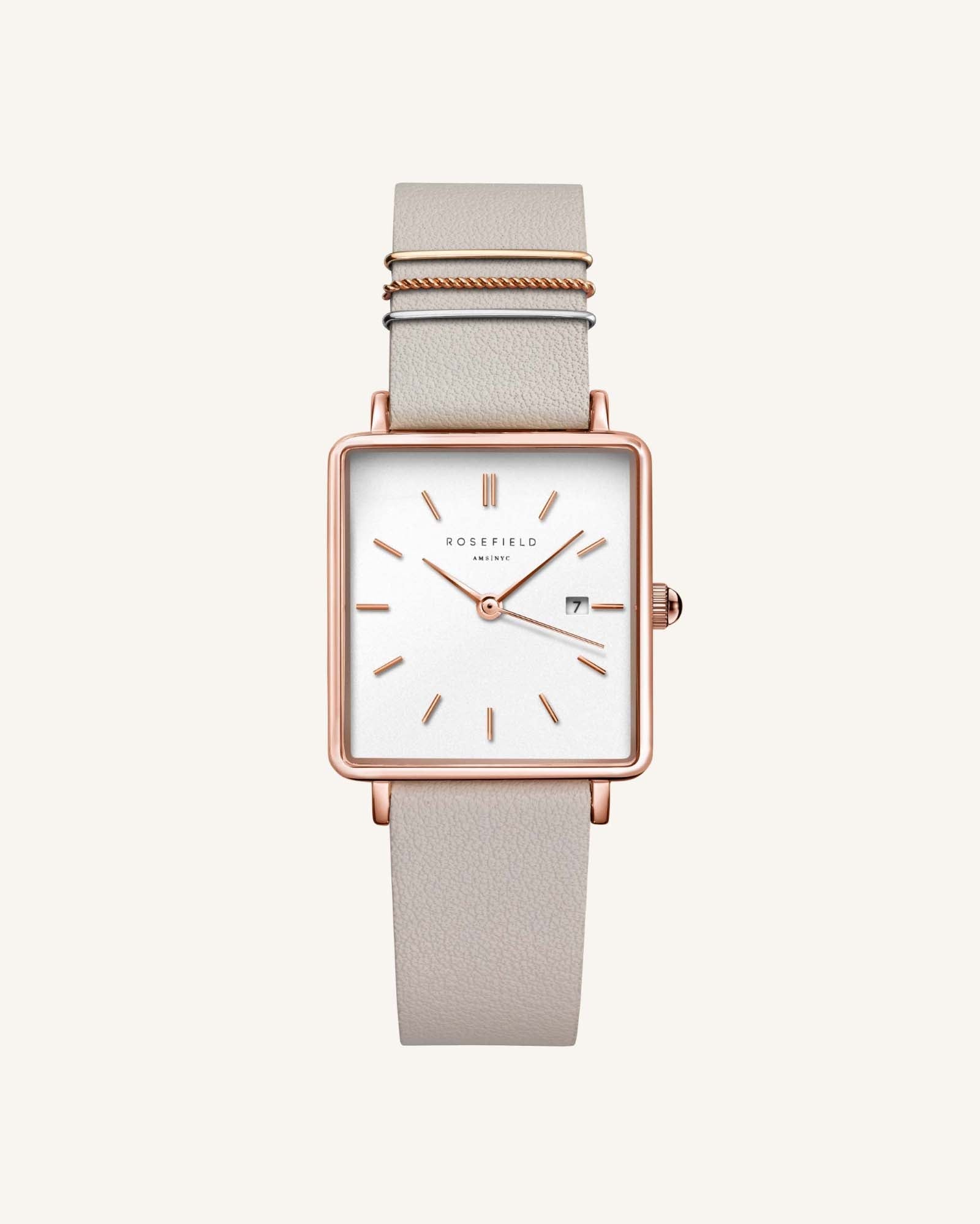 La collection The Boxy est la collection signature de Rosefield. Entre ligne carrée classique et ses multiples bracelets, elle incarne une allure néo vintage. Son cadran 26 mm, l'un des plus petits, promet un look intemporel et épuré.